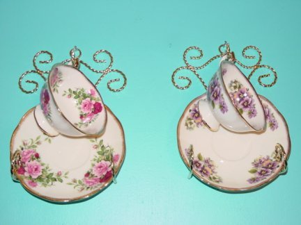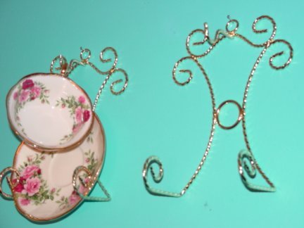 Set of Two wall mounting, polished brass teacup display racks. Very pretty scrolled detail on these racks. These are for wall mount only, and will not stand on a table. Measures 8" tall by 6" wide. ...